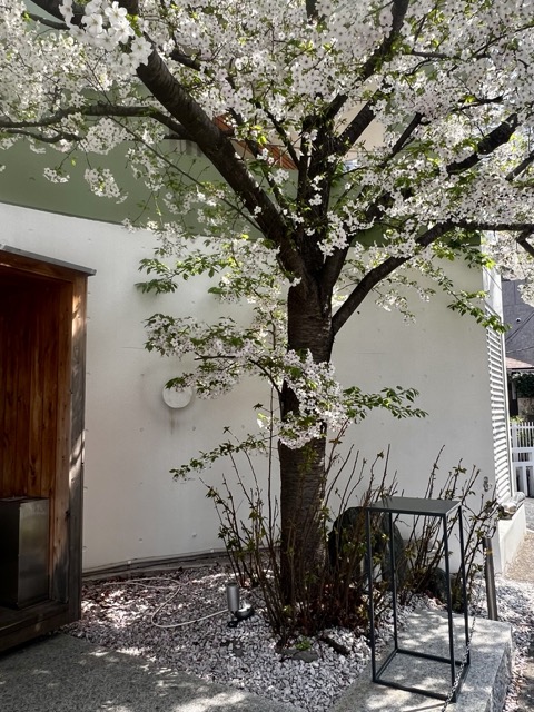 在DOLCE TACUBO的門口左方種植著一顆櫻花樹,特地挑在滿開的期間前往,