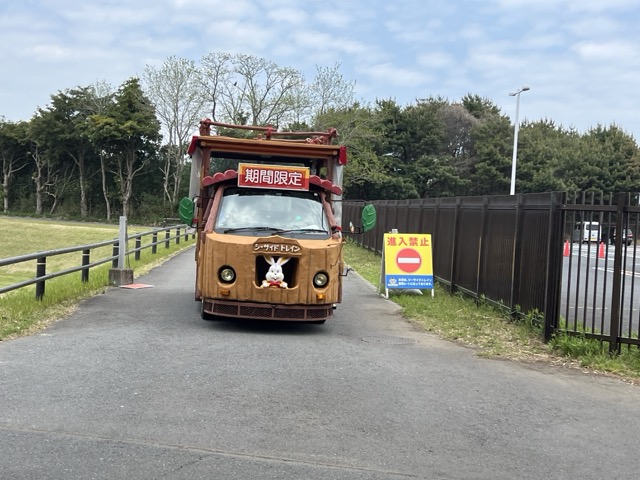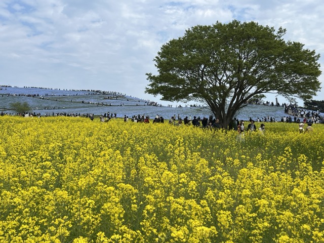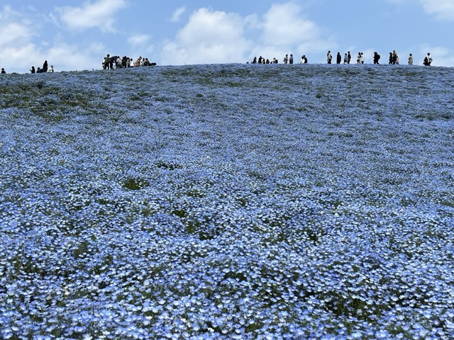 之後再搭乘約半個多小時的車程就抵達海濱公園,遇到日本黃金週連假的第一天,所以非常多人,由於園區的占地面積非常寬廣,領隊會帶大家從入口進去以後前往粉蝶花的區域,步行時間大約15分鐘。