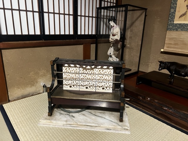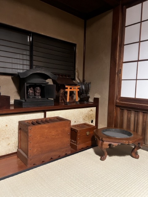 女將將紙門拉開以後,進入到房間內可以看到許多充滿時代感的木製傢俱及擺飾。