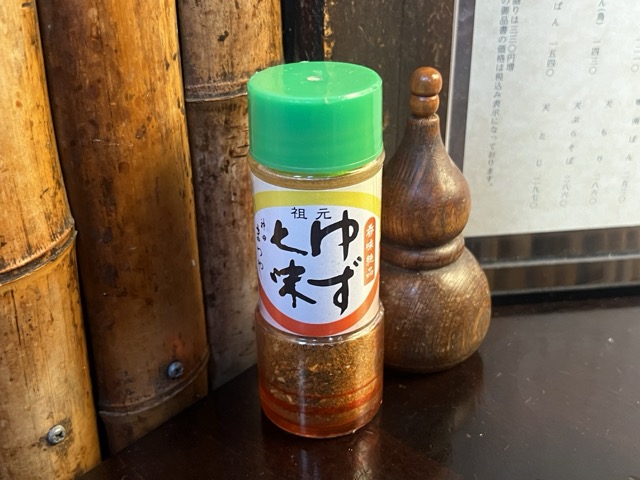 桌上擺放著柚子七味粉可以依照個人喜好添加