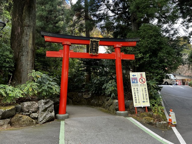 到了箱根神社後遊覽車停在停車場,導遊會帶路從這個遊覽車旁邊的鳥居前往境內