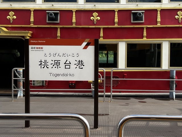 離開箱根神社以後,接著下一個目的地要去搭乘箱根海賊船,海賊船的門票沒有包含在團費裡面,可以自由選擇是否要搭乘,如果不搭乘的話會由遊覽車載往桃源台港站,導遊會在遊覽車上詢問是否要購買海賊船的門票,如果要的話再付現金給導遊,之後會再統一購票。