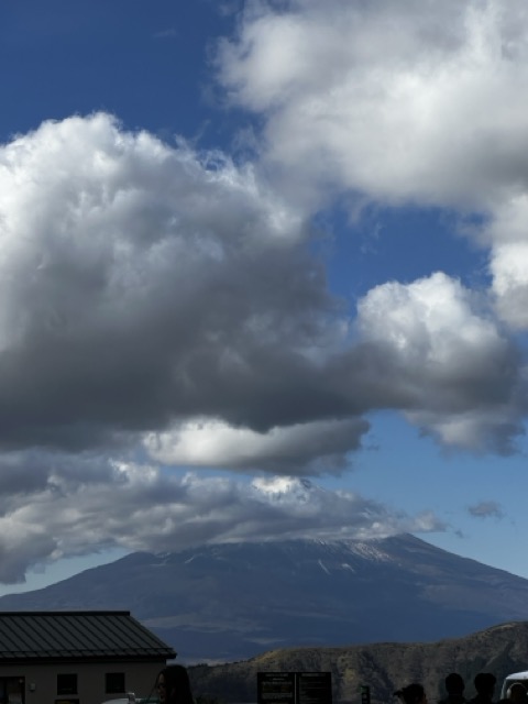 今天的富士山躲在白雲後面