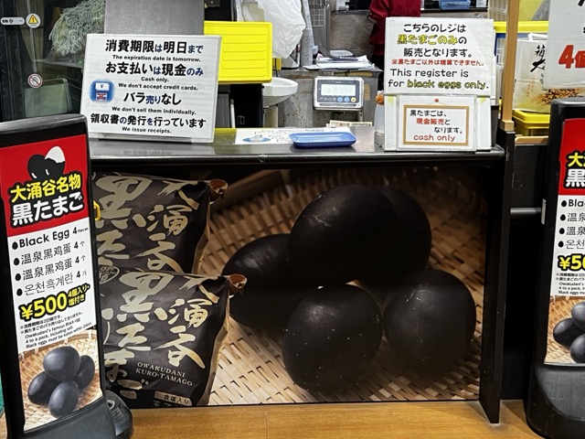 裡面可以買到大涌谷的名物黑蛋,4顆500日圓,有附鹽,只接受現金付款