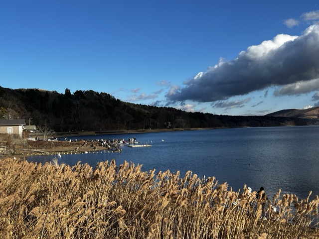 離開大涌谷以後,接著下一站來到山中湖。這裡的視野非常開闊,天氣好的話可以近距離看著富士山倒映在湖面上,可惜的是當天雲層較多沒能看到