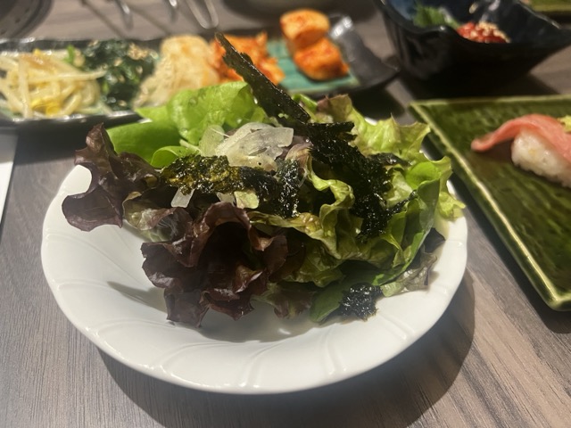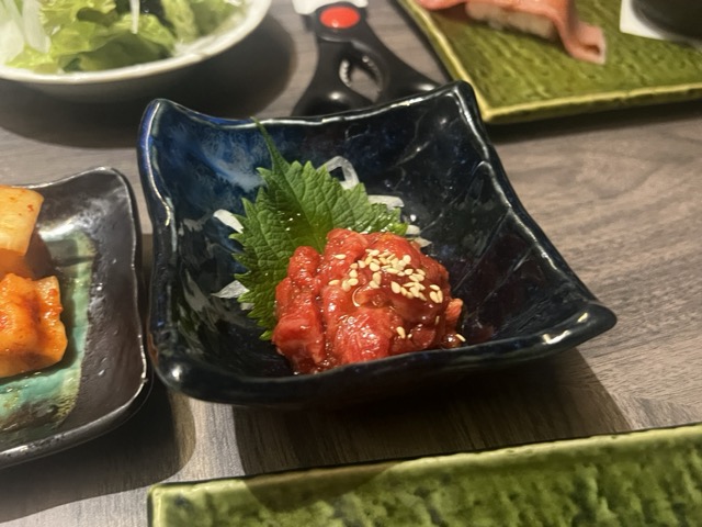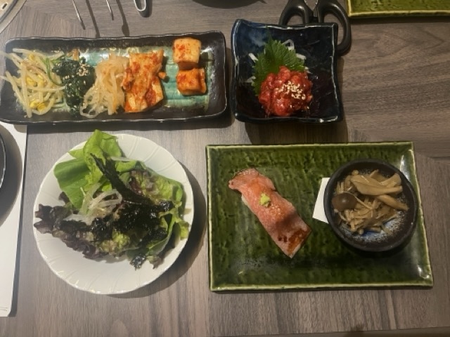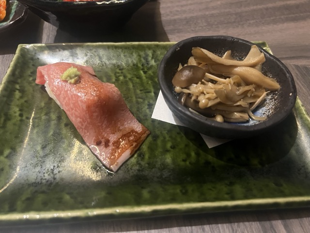 炙燒沙朗牛握壽司跟前菜涼拌什錦菇