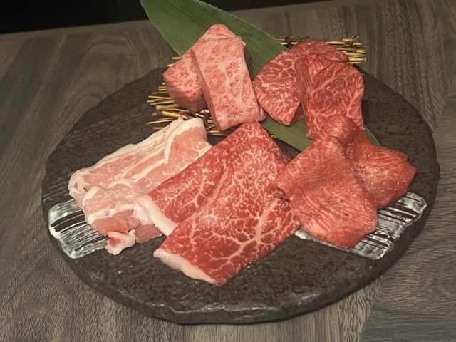 鹽烤牛舌、牛排、當日精選紅肉牛排、紅肉肉片、豬肉肉片