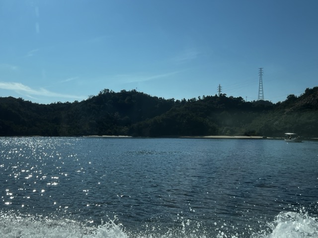 回程從船上看的景色,陽光照射在浪花上好美呀!