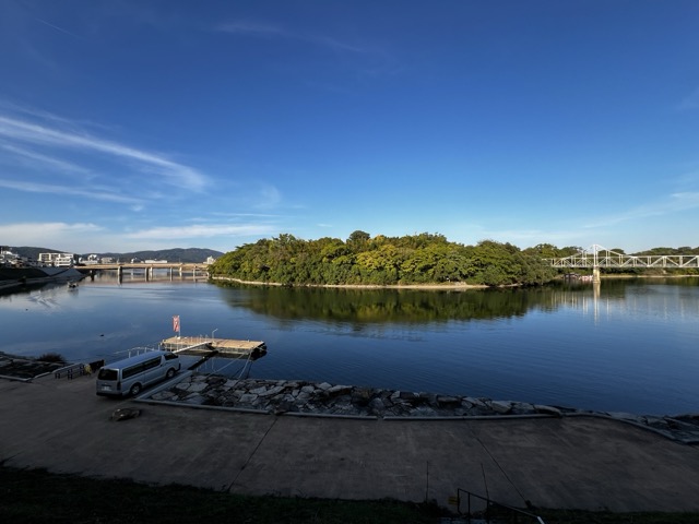 岡山的道路很寬廣,人口密度不算高,在十月的天氣裡走路十分舒服