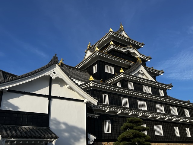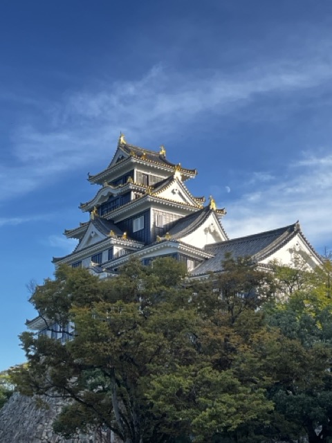 藍天白雲搭配黑得發亮的岡山城,好帥氣呀!