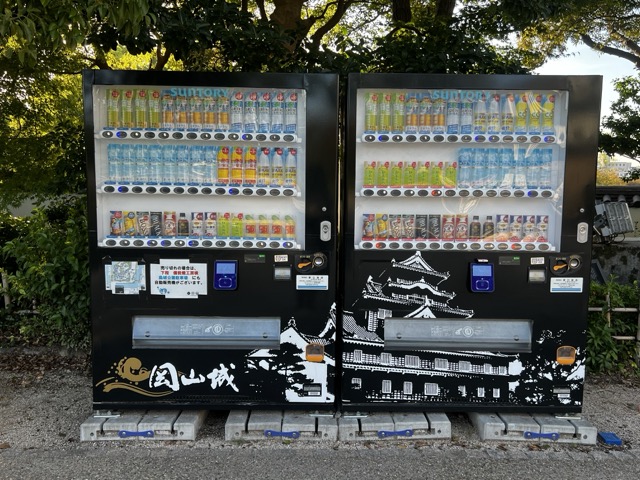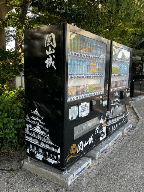 連附近的自動販賣機都設計成岡山城的樣式