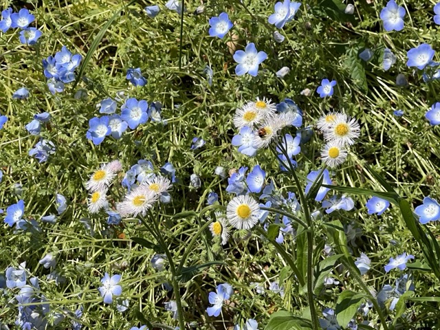 當天前往的時候為4月下旬,雖然已經到花期的後段了,從遠處拍依然可以拍到一片粉藍色花海